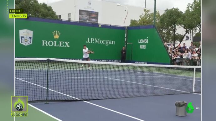 El tenista español, que va a debutar en Sahnghái, ha llevado a cabo este reto en un entrenamiento. La reacción del público lo dice todo.