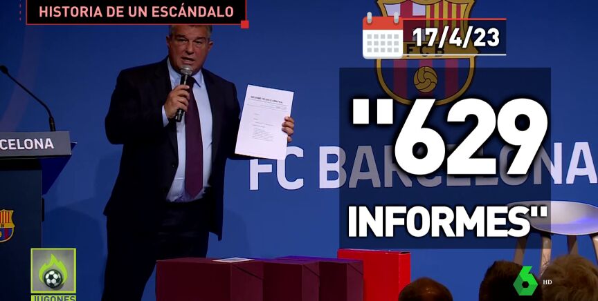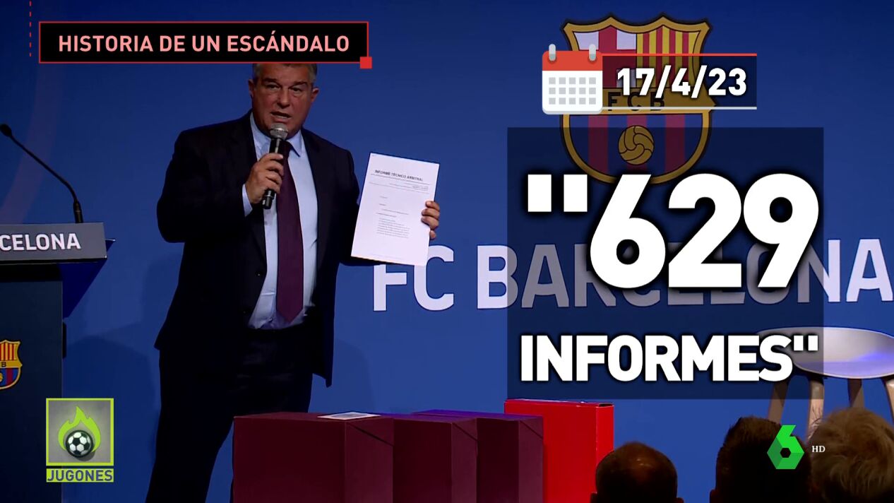 Laporta dio la cara 61 días después de que estallara el caso. Mostró en aquella rueda de prensa 43 CDs, informes técnicos y arbitrales realizados por el hijo de Negreira.
