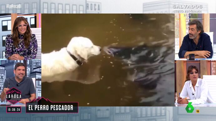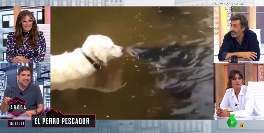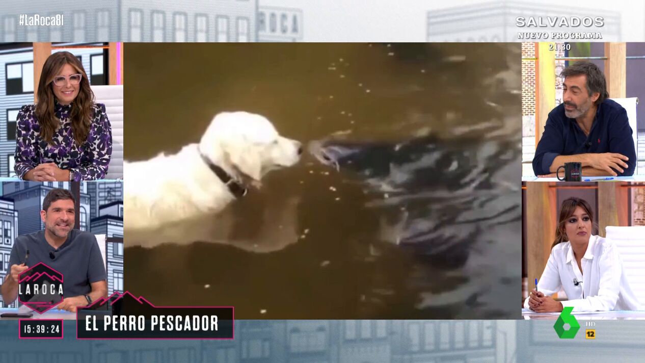 Nacho García ha mostrado en 'La Roca' un vídeo en el que se puede ver la técnica que utiliza un perro para conseguir pescar un gran pez. En las imágenes se puede ver cómo el animal se queda parado hasta que el pez se acerca lo suficiente a él. En ese momento, lo muerde y acaba llevándoselo.