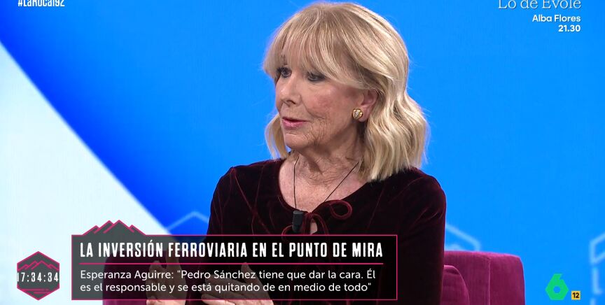 Esperanza Aguirre ha asegurado en 'La Roca' que el presidente del Gobierno, Pedro Sánchez, "tiene que dar la cara" ante la tragedia que tuvo lugar el domingo pasado en Adamuz tras el descarrilamiento de un tren y el posterior impacto de otro.