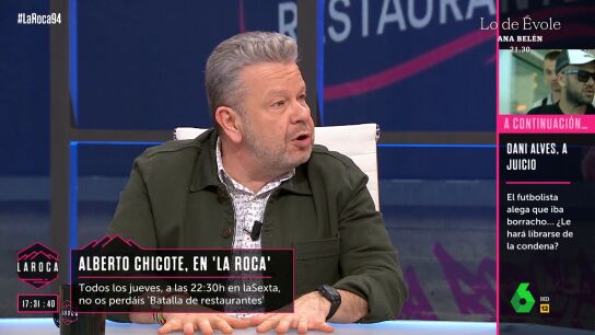 Alberto Chicote visita 'La Roca' para hablar de su nuevo programa en laSexta, 'Batalla de restaurantes', donde varios cocineros compiten por alzarse como el mejor en la preparación de un determinado producto. Un escenario que despierta las dudas de Nuria Roca, que le plantea: "¿Qué hay más en la profesión, compañerismo o competencia?".