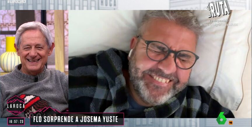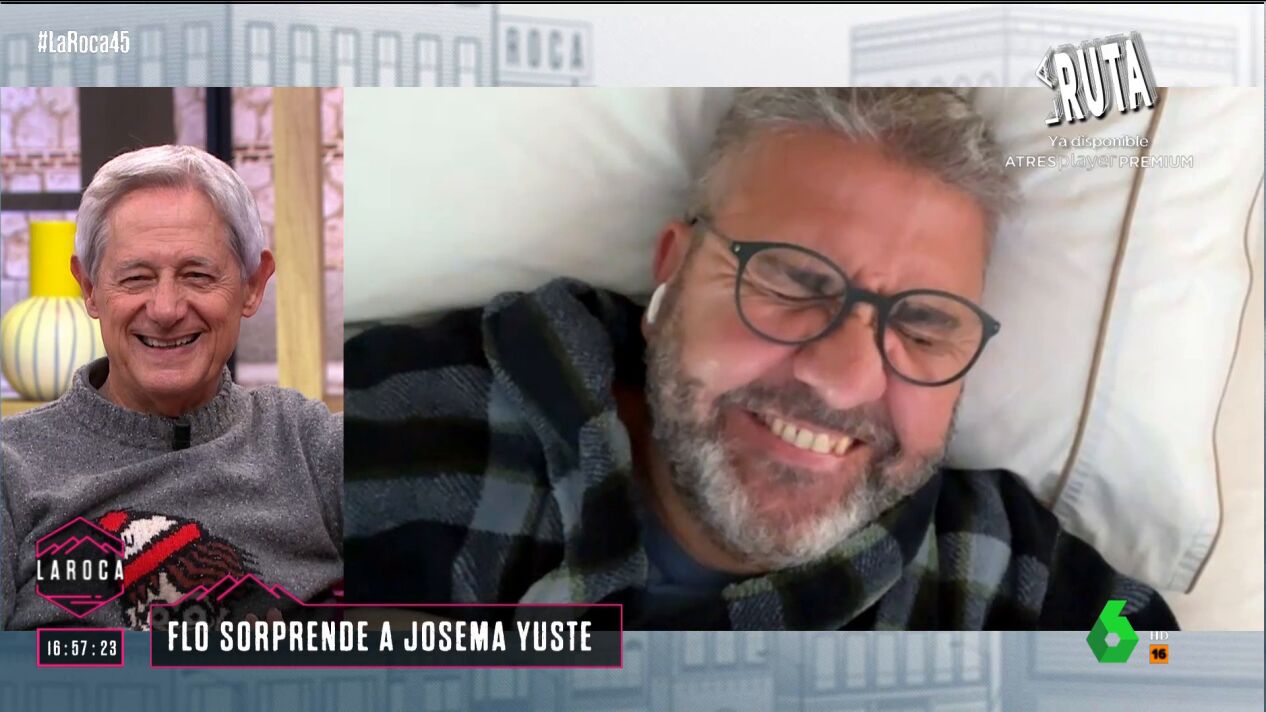 Cuando dos genios del humor se juntan en un mismo sitio, solo pueden ocurrir cosas divertidas. Durante su paso por La Roca, Josema Yuste ha recibido la sorpresa en forma de videollamada de la visita de su querido Florentino Fernández.