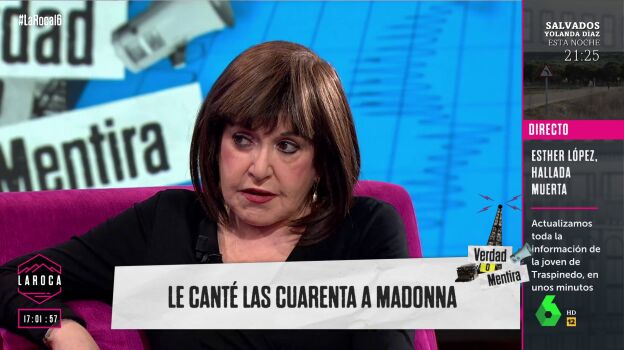 La Roca ha preparado un juego para Loles León, tratando de adivinar qué anécdotas y situaciones le han ocurrido en su vida y cuáles no. Así es cómo ha acabado confesando lo que le ocurrió con Madonna, durante una fiesta que Pedro Almodóvar dio en su honor.
