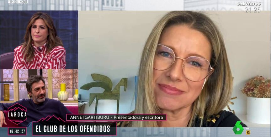 "¿Para cuándo una ley para que detengan a todos los 'coaches'?", preguntó Juan del Val en La Roca, unas declaraciones que han provocado que Anne Igartiburu entre en directo para dar su opinión en la sección de 'El club de los ofendidos' por el escritor. Al ver a la presentadora, Del Val rápidamente ha querido "rectificar" sus palabras: "Todos los 'coaches' deben ir a la cárcel menos Anne Igartiburu", ha defendido.