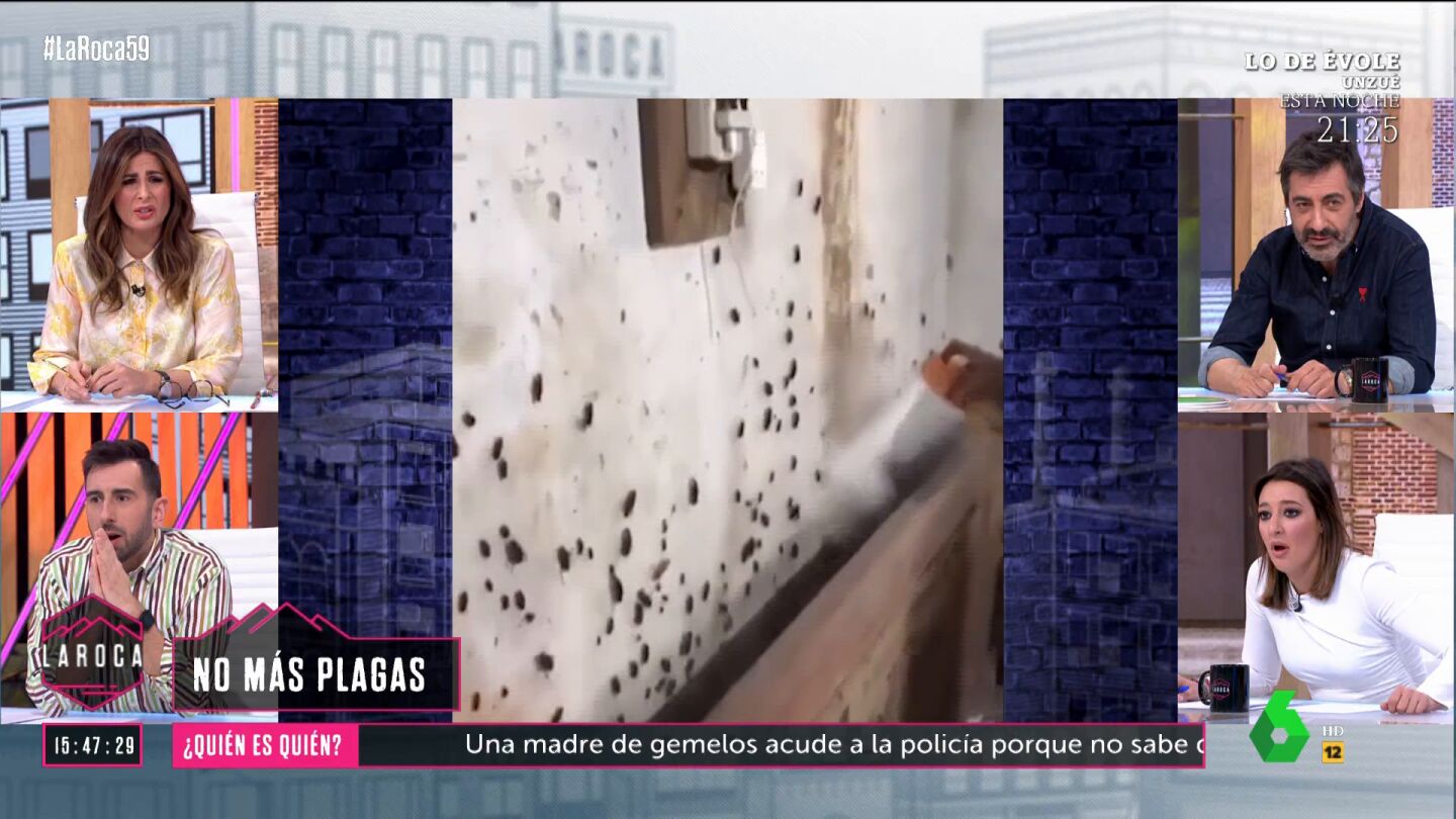 Con el ánimo de demostrar sus palabras, la periodista da paso a un vídeo en el que el efecto del insecticida hace salir a una plaga de cucarachas de una pared. "Ay, pero por qué tenemos que ver esto", pregunta Nuria Roca entre el asombro y el asco, a lo que Sara Ramos le contesta que tiene un fin pedagógico, pues "estamos aprendiendo los beneficios del insecticida", aclara entre risas.