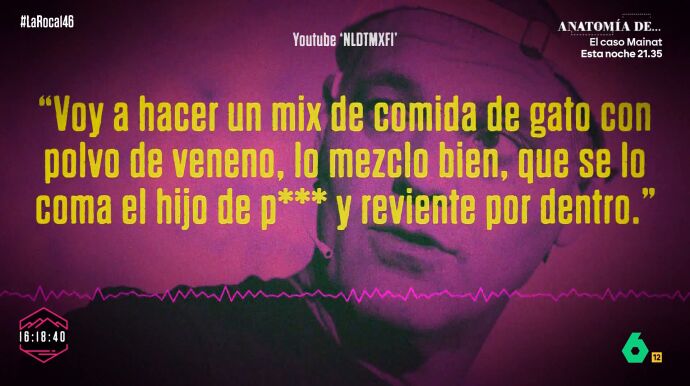 En uno se le escucha decir: "Voy a hacer un mix de comida de gato con polvo de veneno, lo mezclo bien y que se lo coma el hijo de puta y reviente por dentro".