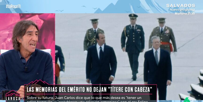 En este vídeo de La Roca, el escritor Benjamín Prado reacciona a las memorias del rey Juan Carlos I. "El rey emérito, como se veía en las monedas de curso legal, creía que eran suyas y que las podía coger", ironiza el colaborador.