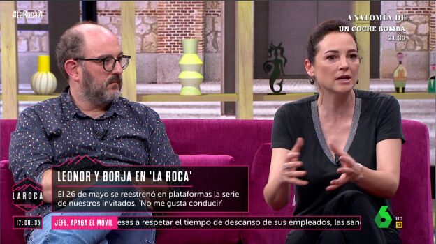 Leonor Watling y Borja Cobeaga visitan 'La Roca' para presentar su nueva serie 'No me gusta conducir', disponible en plataformas desde el 26 mayo. Aunque también se refieren a otros temas como la contratación de actores por su número de seguidores en las redes sociales.