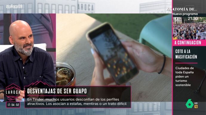 "¿Es cierto que la gente te descarta por ser demasiado guapo en las aplicaciones para ligar?", pregunta Nuria Roca al filósofo José Carlos Ruiz en La Roca, donde responde que le "parece demasiado raro", pero tirando de "teorías sociales de la psicología" sí habría una que explicaría la razón psicológica por las que preferimos evitar este tipo de perfiles.