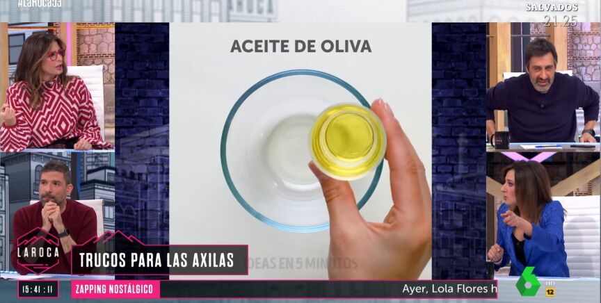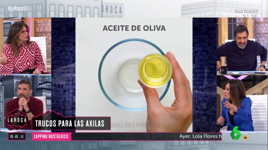 Sin embargo, la colaboradora de La Roca tiene la solución: "Hay un combo mágico: aceite, glicerina, aloe vera, bicarbonato y al sobaco", ha indicado Ramos, que ha asegurado que se tiene que calentar, dejarlo enfriar y posteriormente aplicarlo en la axila de forma diaria. "No vuelves a oler mal", ha asegurado.