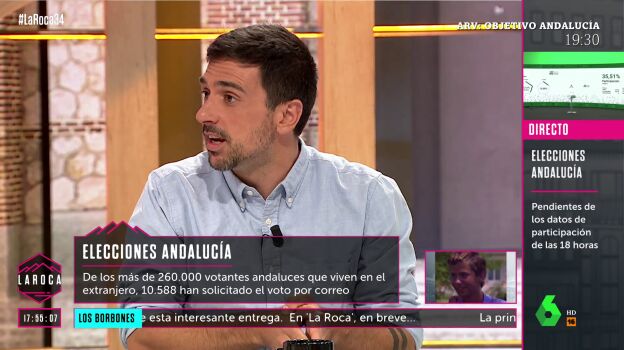 Ante la importante subida en el primer dato de participación de las elecciones en Andalucía, Ramón Espinar ha recordado que esto supone que la participación en las elecciones de 2018 fue "paupérrima". En La Roca, el analista explica que se trataban de las "elecciones de los ERE", en las que "se abstuvo hasta el apuntador".