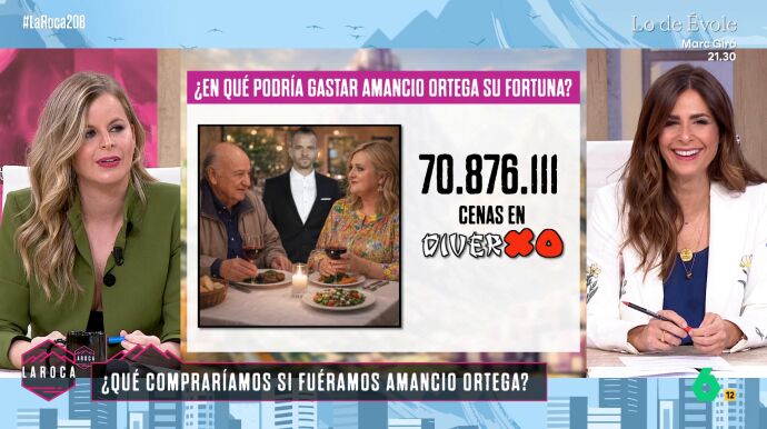 La colaboradora de La Roca Marta Critikian ha señalado que Amancio Ortega está en el 'top ten' de los más ricos del mundo y que cuenta con una fortuna de 127.577 millones de euros. Así, Critikian ha querido traducir esta cifra "al lenguaje de pobres" para que la gente entienda qué se podría comprar el magnate con todo ese dinero.