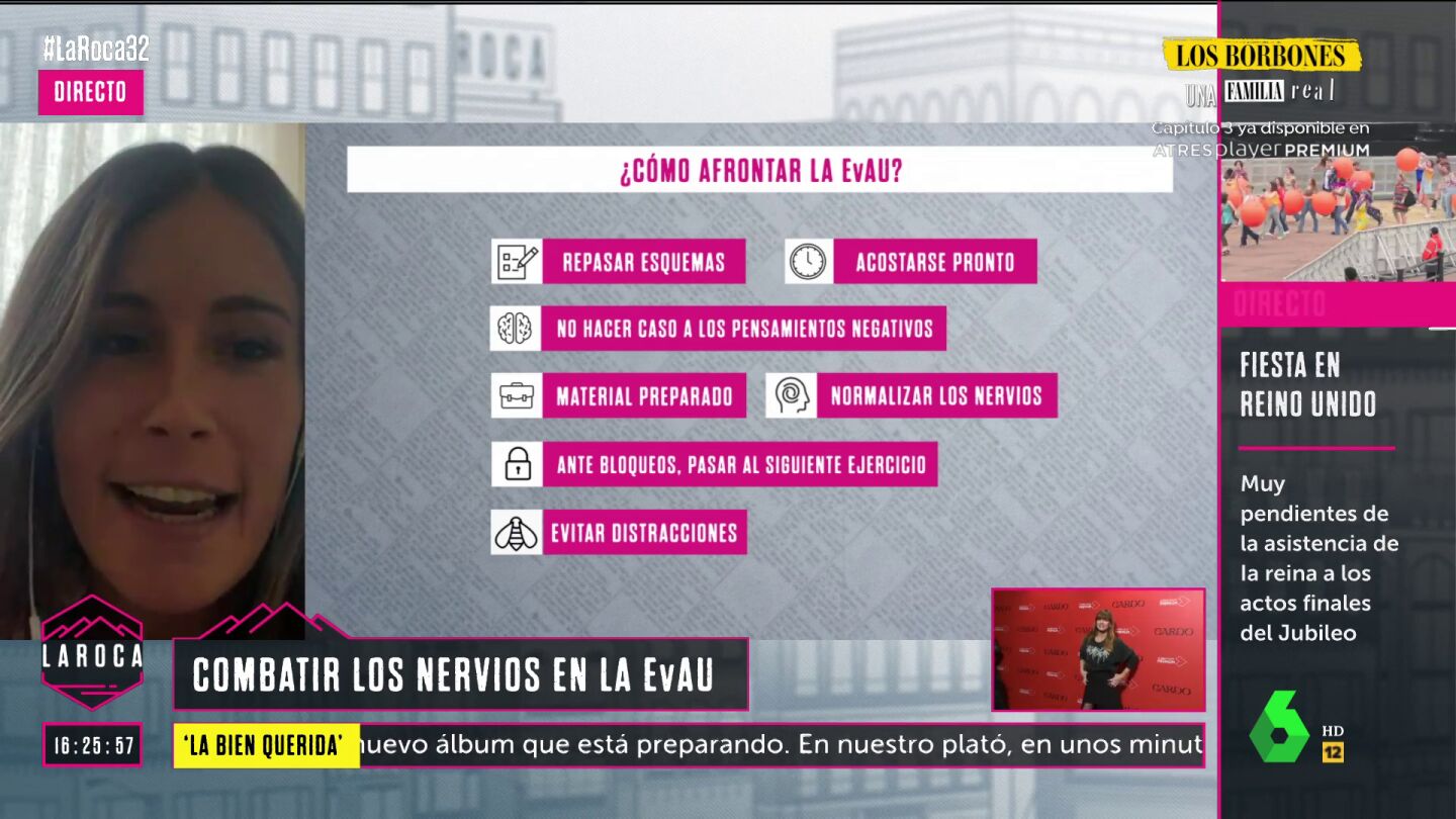 Llega la semana más importante del año para miles de estudiantes en nuestro país. Un año más, la EvAU pone a prueba sus conocimientos... y sus nervios antes de las pruebas. Para darles las pautas que les puedan ayudar a sobrellevar esta situacion, en La Roca hablamos con la psicóloga Jimena Rodríguez, que nos aclara que tener nervios es "normal" y que está "bien".