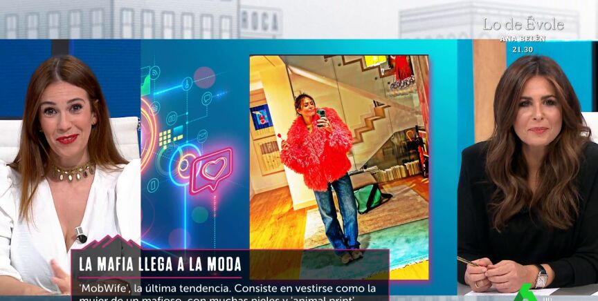 "No sé si eres consciente, pero te estás convirtiendo en la mujer de un mafioso", le ha indicado Plaza. La colaboradora ha explicado que existe una nueva tendencia llamada 'MobWife' que consiste en vestir como la mujer de un mafioso llevando abrigos de pelo, labios rojo o tacones altos.