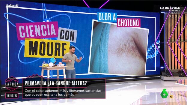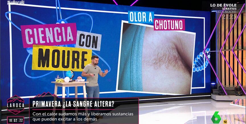 También abordó una cuestión más 'peliaguda' como el sudor y los olores de la primavera. El divulgador científico explica en el vídeo sobre estas líneas cómo esto está relacionado con el vello corporal de los humanos: "¿Nunca os habéis preguntado por qué somos como un mono calvo, pero de repente tenemos unos moñoños de pelo en los sobacos y en el pubis?", comenta Moure, que asegura que "se cree que sirve para amplificar olores".
