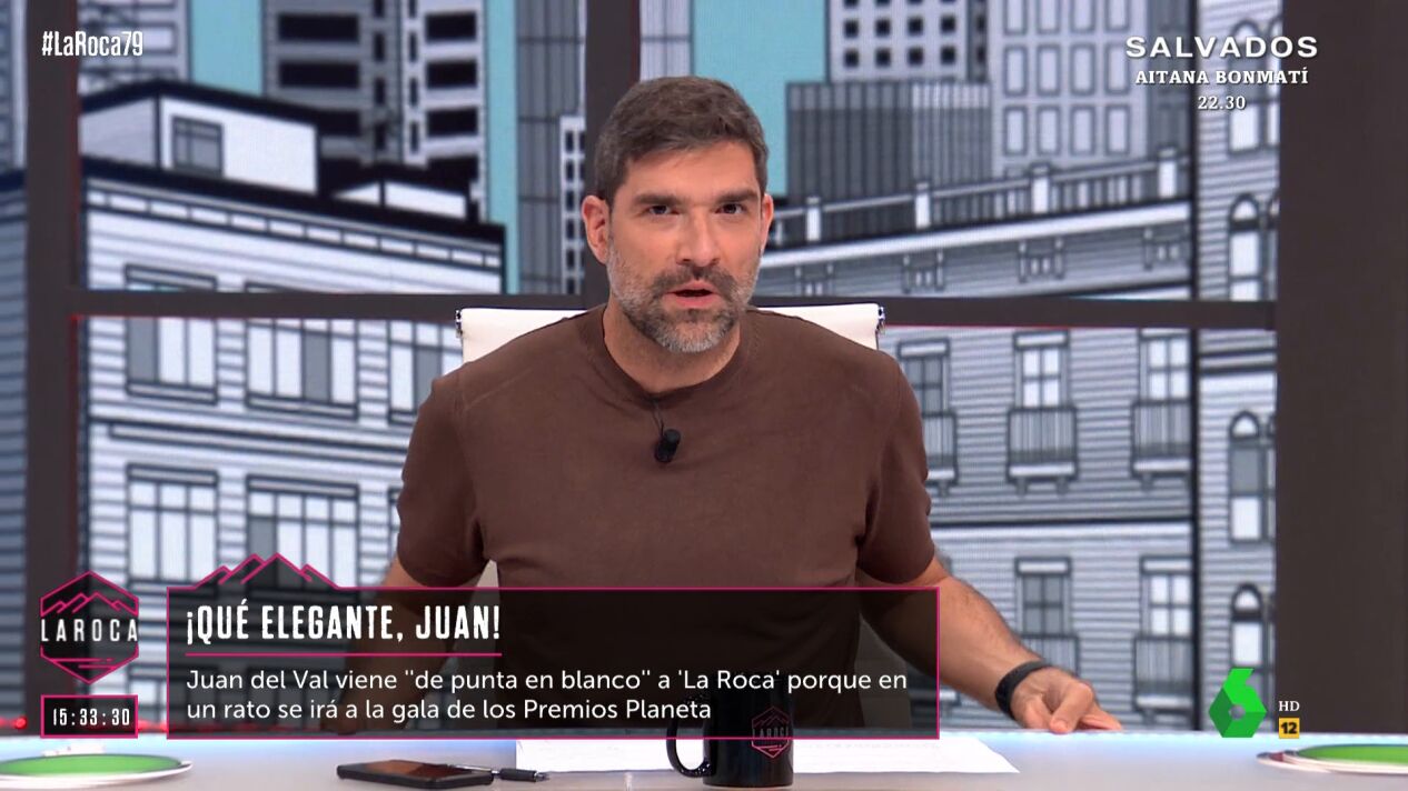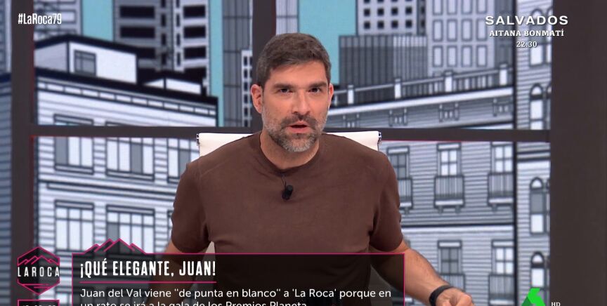 Juan del Val y Sara Ramos acuden de lo más elegantes a La Roca, un hecho que llama la atención de Nuria Roca. "Vais muy bien, pero mira cómo van estos dos", dice en referencia a Berni y Nacho García, y este último le advierte: "No hagas muchos chistes con la ropa de la gente, Nuria".
