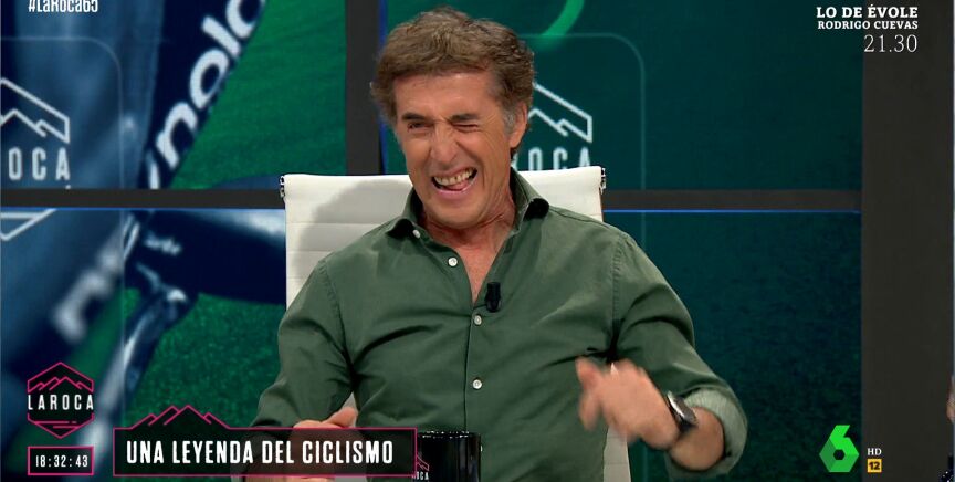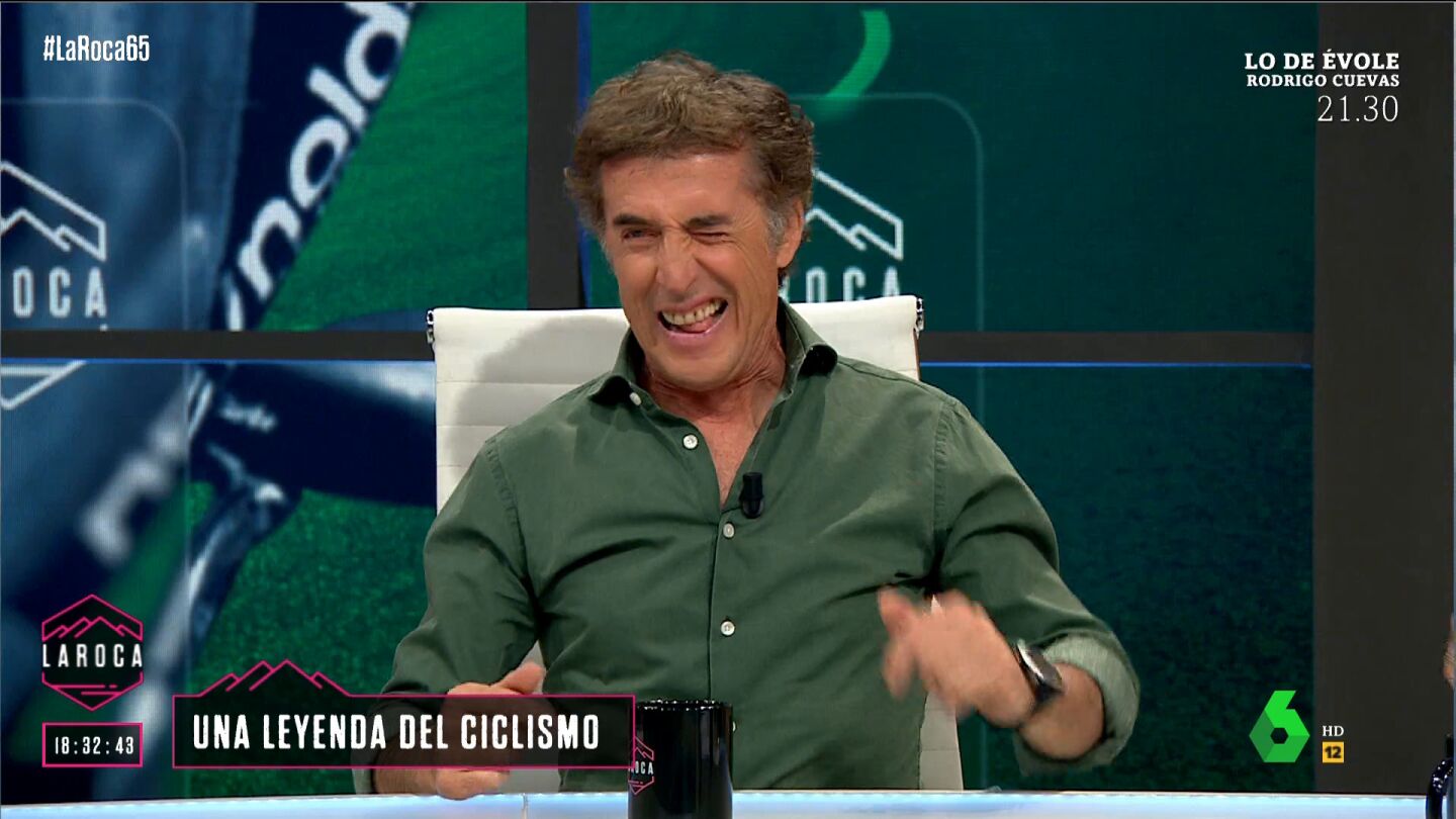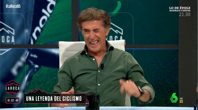 La leyenda del ciclismo español comienza su visita a La Roca con una broma al colaborador, afirmando que tendría que estar al otro lado de la mesa. El propio Perico Delgado reconoce que se trata de una "puñalada" en toda regla.