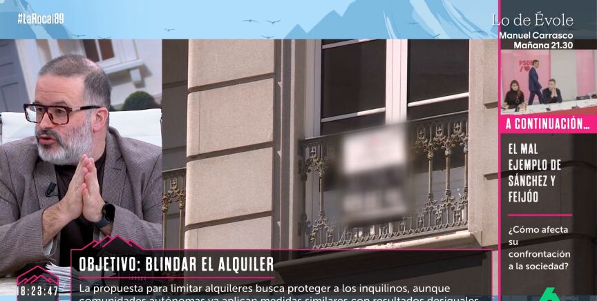 Edu Galán ha reaccionado en La Roca al anuncio del Gobierno de la bonificación del 100% del IRPF a los propietarios que no suban el precio del alquiler de las viviendas. "Esta medida me parece totalmente contradictoria con el espíritu de la Constitución. La Constitución dice que los españoles tenemos derecho a una vivienda digna, y esto no puede depender del voluntarismo de un casero para acogerse a una medida o no", ha manifestado el escritor.