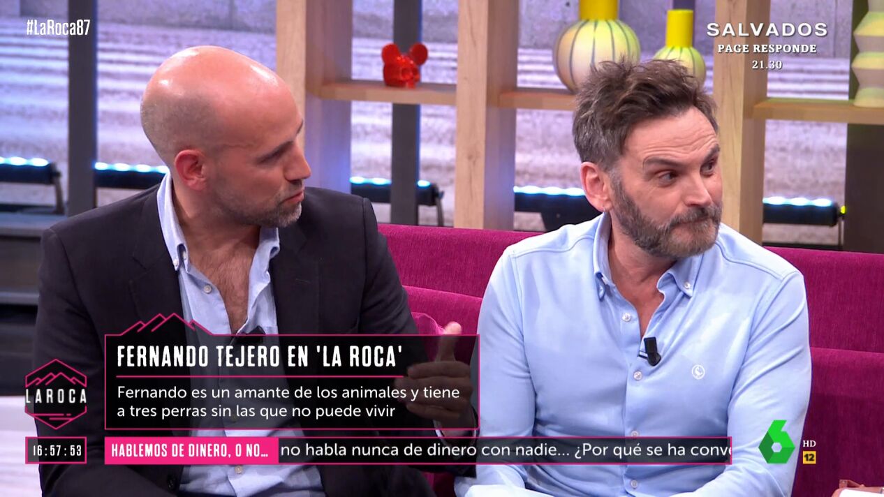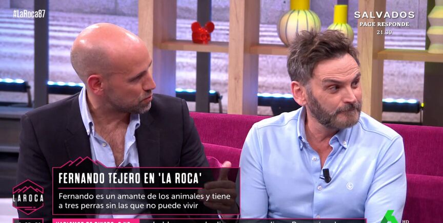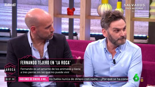 Fernando Tejero confiesa en 'La Roca' que el amor que siente por sus perros es tal que ha llegado a rechazar papeles para no estar alejado de ellos, el último, una serie que le ofrecieron en Chile y que, según explica, "tenía una pinta cojonuda".