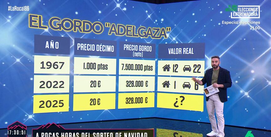 En 2022, el precio de un décimo pasó a ser de 20 euros, con un premio neto de 328.000 euros, equivalente en su día a una casa y seis coches.