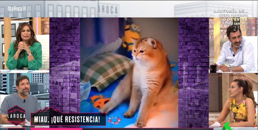 En el vídeo se puede ver cómo el gato comienza a tirar con la boca de uno de los extremos, algo que ha hecho que los colaboradores empiecen a preocuparse al intuir lo que iba a pasar a continuación. "¡Se va a hacer daño!", ha indicado Nuria Roca.