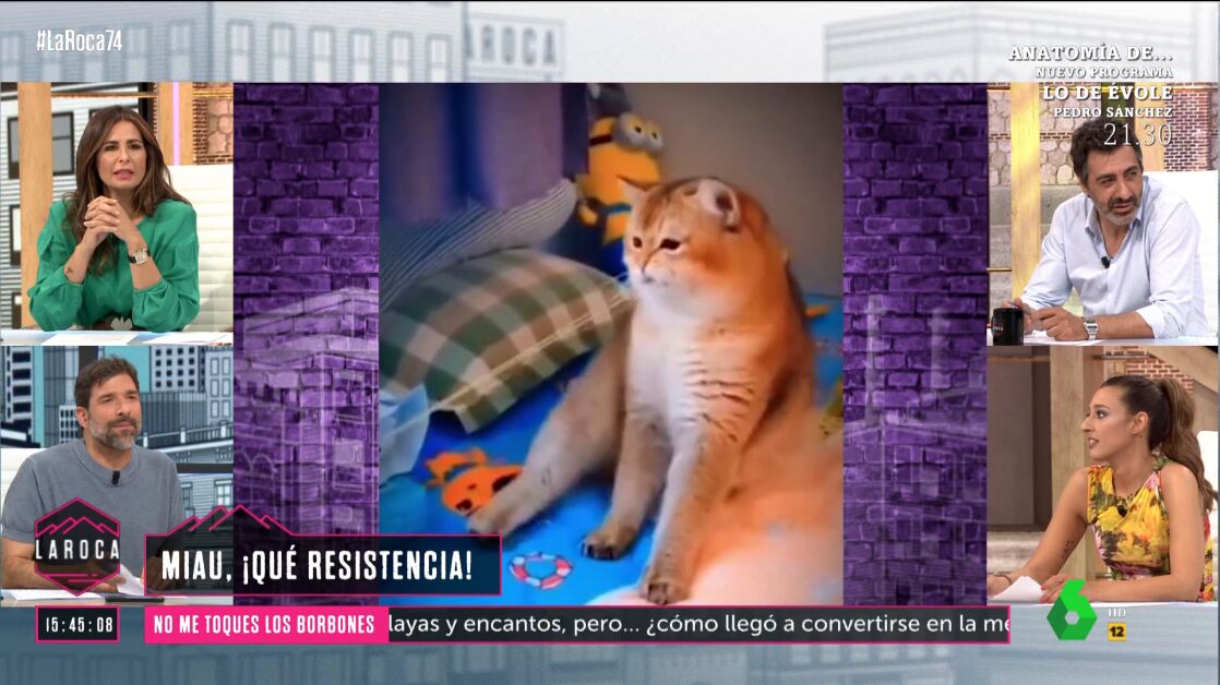 Nacho García ha mostrado en La Roca un vídeo en el que se puede ver qué es lo que le ocurre a un gato que está jugando con una goma elástica que ha cogido con la boca. "Es peligrosísimo", ha advertido el colaborador.