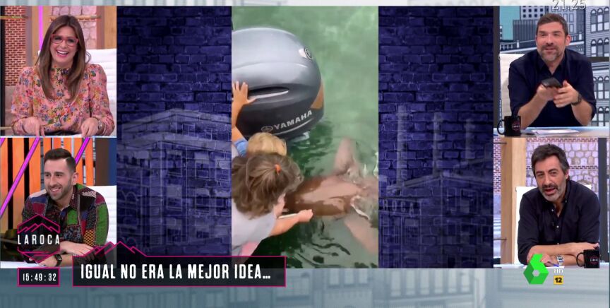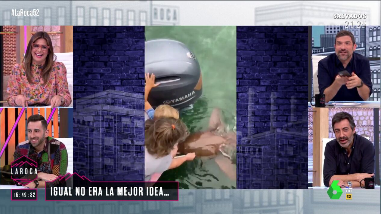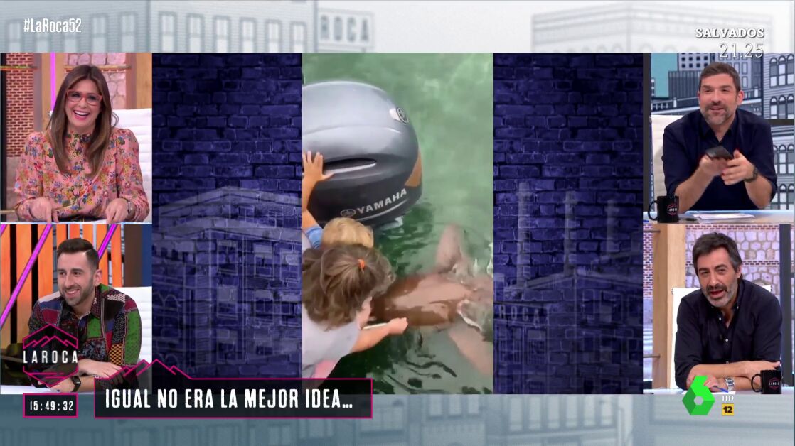 Nacho García ha mostrado en La Roca uno de los vídeos más virales del momento: el instante en el que un niño que estaba dando de comer a los tiburones junto a su madre cae al agua mientras alguien les grababa.
