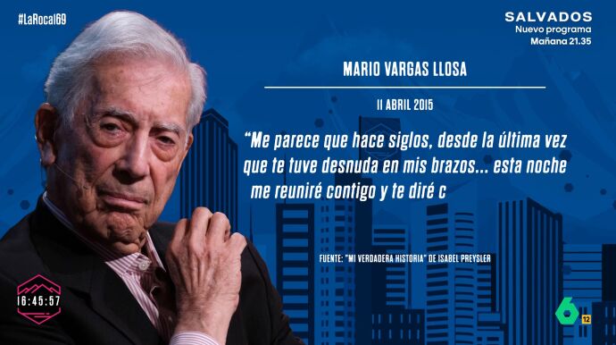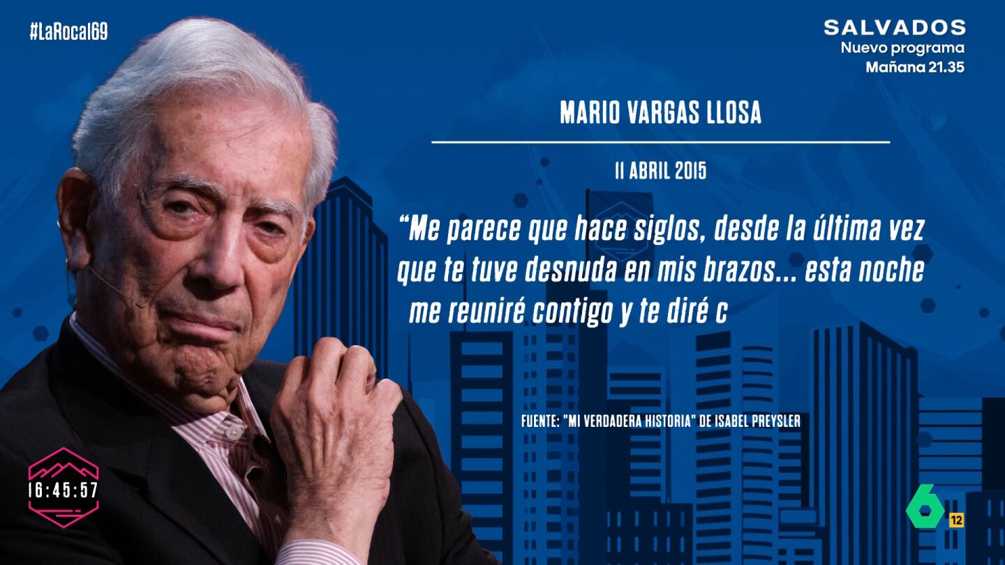 Isabel Preysler ha provocado un auténtico terremoto en el mundo de la prensa de sociedad con la publicación de sus memorias, en las que dedica un apartado muy especial a su último amor: Mario Vargas Llosa. La socialité no ha dudado a la hora de reproducir las cartas que el escritor le enviaba. "Me parece que hace un siglo desde la última vez que te tuve desnuda entre mis brazos. Esta noche me reuniré contigo y te diré cosas dulces al oído mientras te hago el amor", escribió el premio Nobel de literatura en un fragmento de esta misiva de la que se hace eco también La Roca.