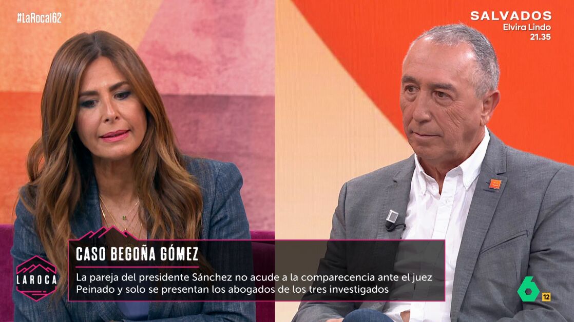 Joan Baldoví, portavoz de Compromís en las Cortes Valencianas, visitó el plató de La Roca para ser entrevistado por Nuria Roca en la sección Vis a Vis. La presentadora le preguntó por su opinión acerca de la quinta citación del juez Peinado a Begoña Gómez, esposa del presidente del Gobierno.