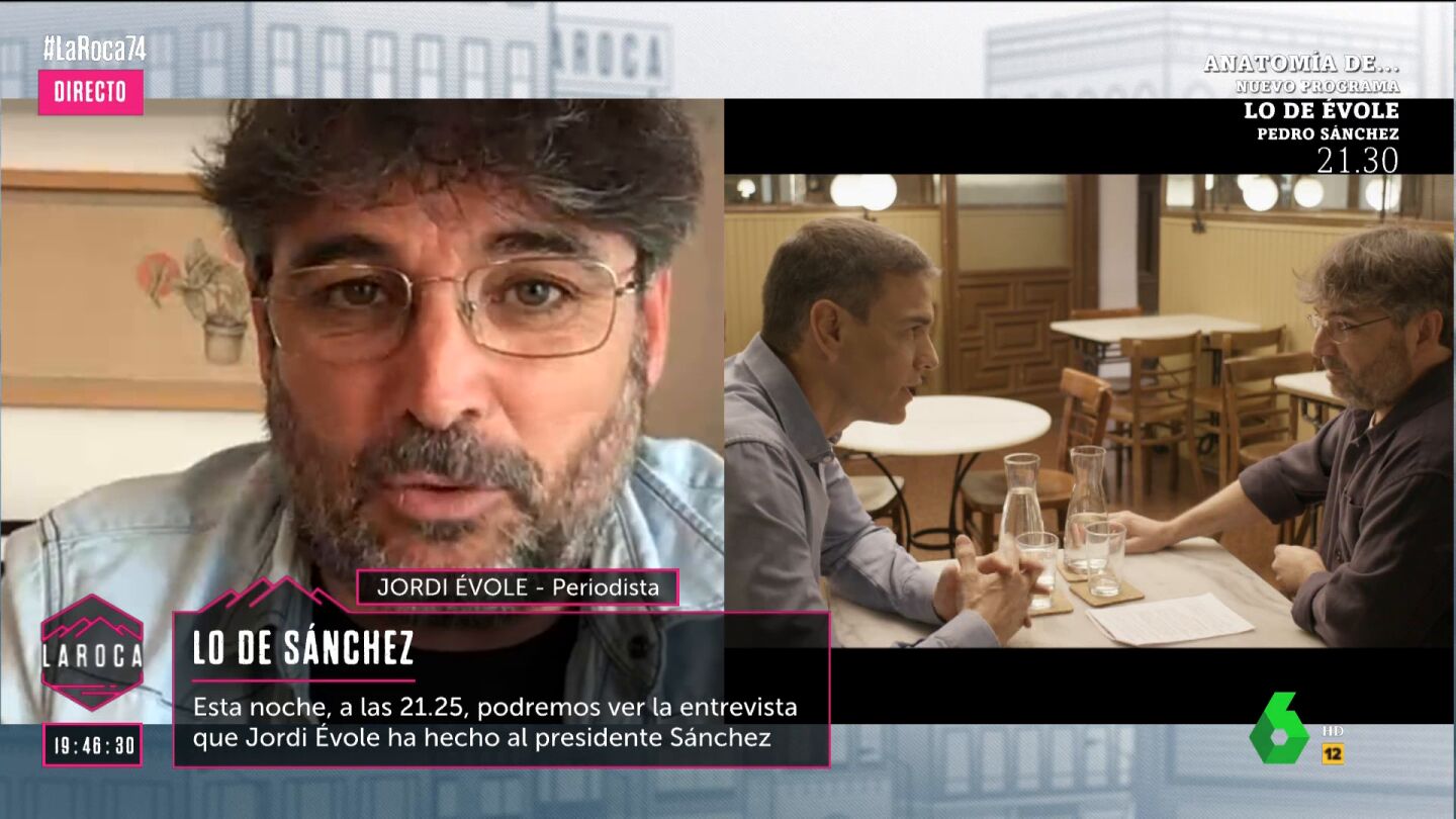 Jordi Évole ha afirmado en La Roca que ha entrevistado a Pedro Sánchez en un momento en el que "la situación no es buena" para el presidente del Gobierno, "aunque no es dramática". "Yo creo que ha venido a intentar empezar la remontada, y va a darlo todo porque si algo tiene Pedro Sánchez es un gen competitivo que yo si fuese rival de él, no estaría nada confiado", ha expresado Évole.