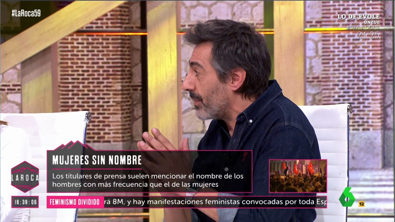 Los titulares de prensa suelen mencionar más frecuentemente el nombre de los hombres que el de las mujeres, un polémico tema que analizan en el plató de La Roca. "Si no te ponen mujeres futbolistas en los titulares no pueden generar el interés", afirma la actriz Abril Zamora en el plató, donde Juan del Val destaca que "el fútbol femenino no interesa" tanto como el masculino.