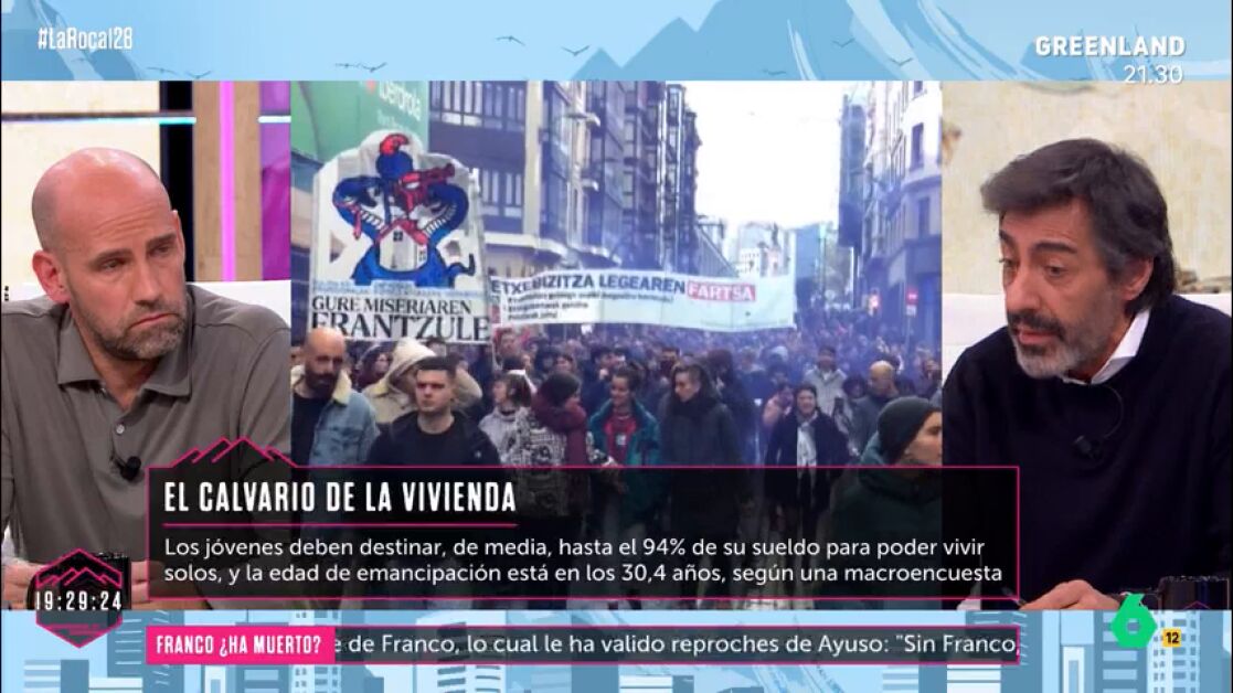 El escritor argumentó que hay personas con capacidad económica que optan por destinar su dinero a distintos fines, como abrir un negocio o adquirir una vivienda a menor precio. Una postura que fue rebatida por Berni Barrachina, quien sostuvo que "invertir en vivienda es, en sí mismo, especular".