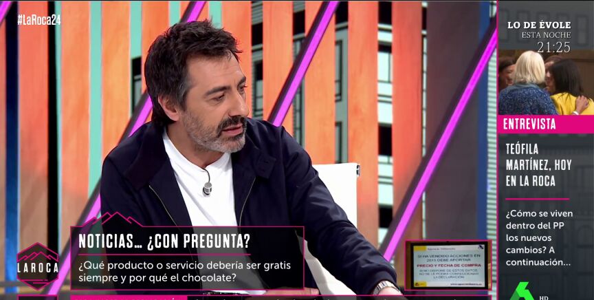 "Juan Del Val, ¿qué debería ser siempre gratis en la vida?", le ha preguntado Sara Ramos al escritor, quien ha defendido, en primer lugar, que "deberían ser gratis siempre todos los colegios y los hospitales".