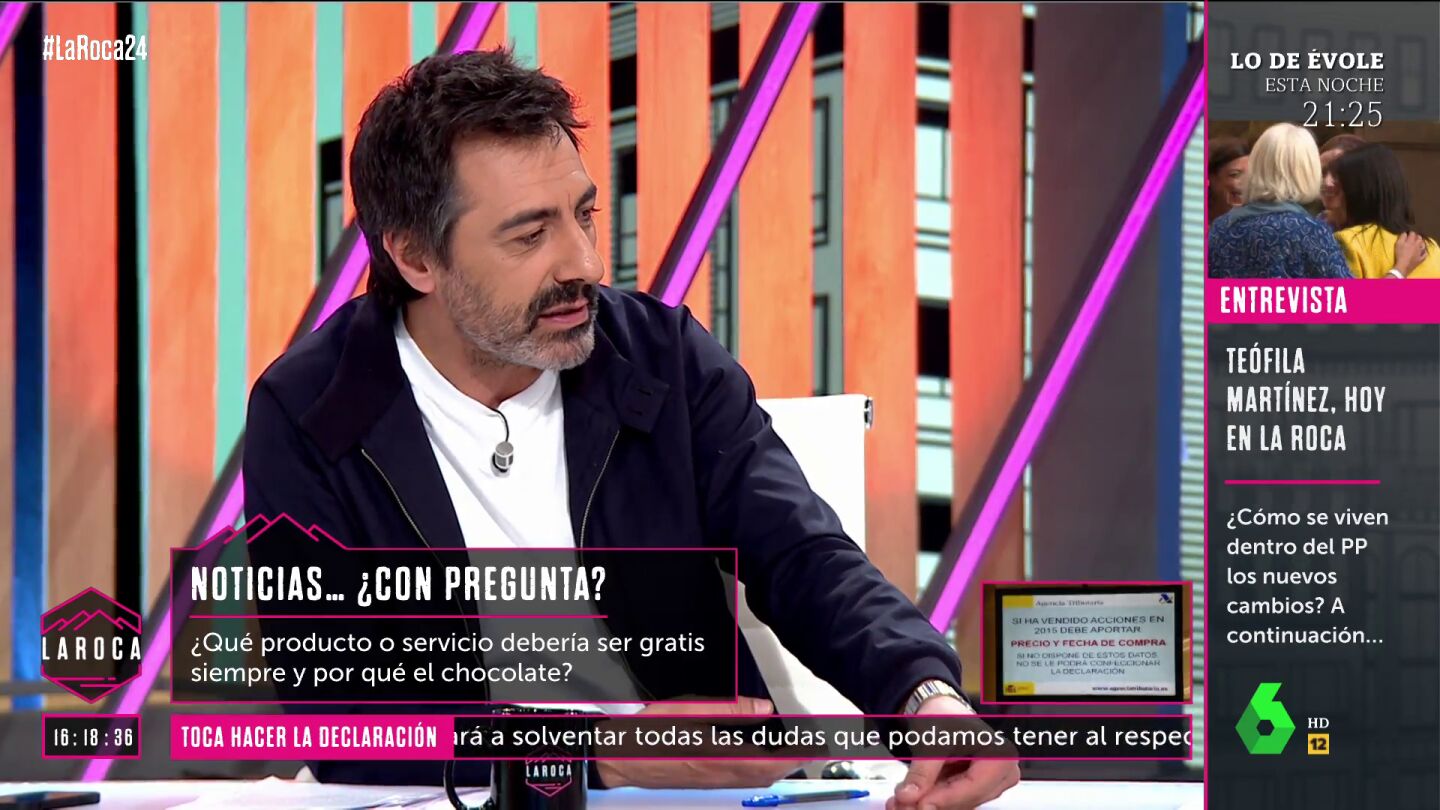 Sara Ramos ha querido saber la opinión de Juan del Val sobre "qué debería ser siempre gratis en la vida". En el vídeo, su respuesta.