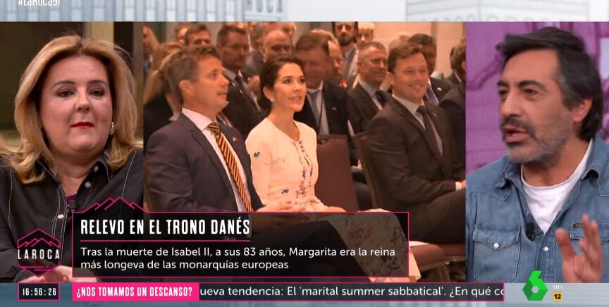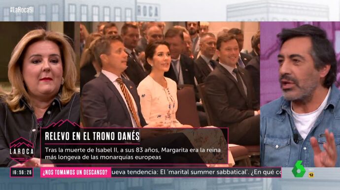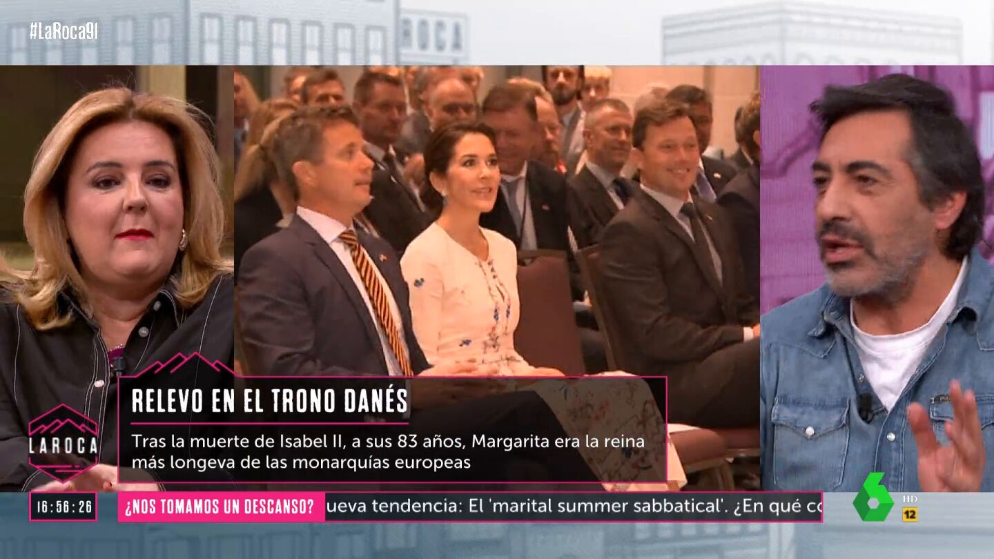 La reina Margarita de Dinamarca abdicó la corona en su hijo, Federico X, este pasado domingo. Un gesto que Juan del Val calificó de "farsa" porque, según comentan algunos medios, esta habría sido la forma de la monarca de "arreglar los devaneos de su hijo con Genoveva Casanova porque si no Mary Donaldson se iba a marchar" bajo previa separación. "Entonces ella le proclama rey y ese matrimonio sí sigue", resumió el colaborador, que no pudo evitar soltar: "Lo de las monarquías y los matrimonios de postureo es una cosa bastante común".