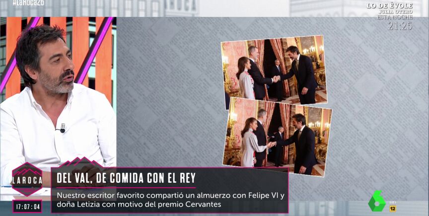 El colaborador de La Roca Juan del Val ha contado que estuvo en un evento con el rey Felipe VI y la reina Letizia, una comida a la que él asistió con motivo del Premio Cervantes. De este evento hubo algo relativo al protocolo que le llamó mucho la atención.