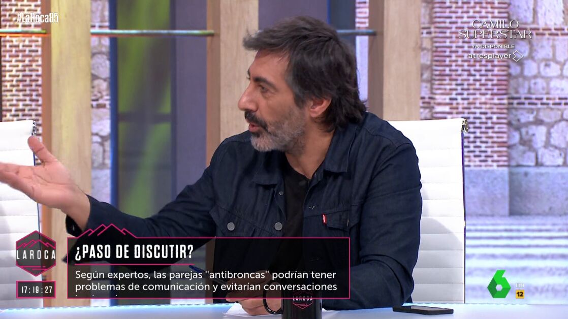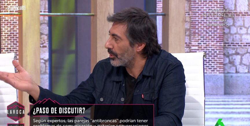 Uno de los temas que han tratado este domingo en el plató de La Roca son las discusiones de pareja, momento en el que Nacho García ha afirmado que "lo que hacen Nuria Roca y Juan del Val no es discutir, sino hacer el tonto". "Esta gente lo que quiere es comerse la boca", ha bromeado, tras lo que Del Val ha señalado que cuando discute con su mujer, les "dura una hora". "