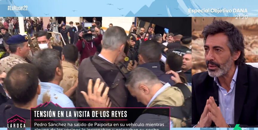 Juan del Val analiza y opina sobre las imágenes que se han producido en la mañana de este domingo después de que los reyes, Felipe VI y Letizia, y Pedro Sánchez visitaran Paiporta, el epicentro del desastre provocado por la DANA en la Comunidad Valencia. "No se ha echado de menos a los políticos, se ha echado de menos muchos más efectivos", defiende el colaborador, ya que el pueblo valenciano no ha contado con los efectivos necesarios para hacer frente a lo sucedido en estos "cinco días".