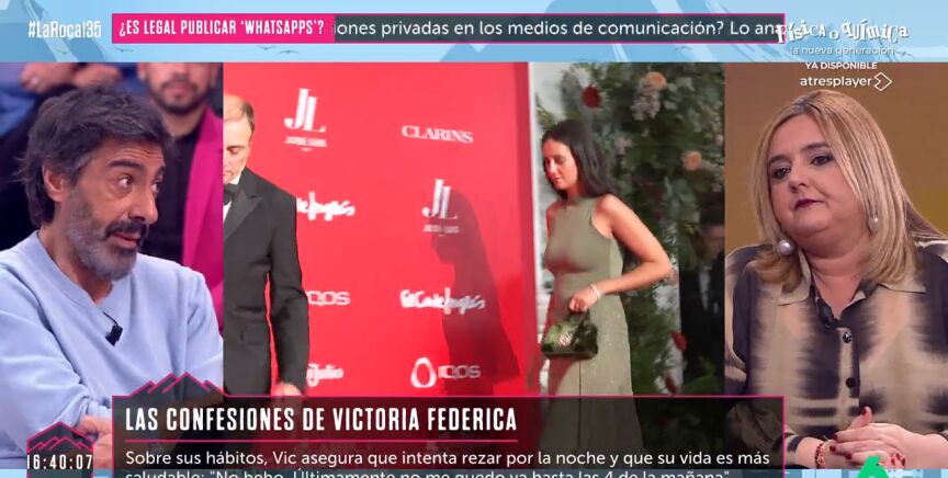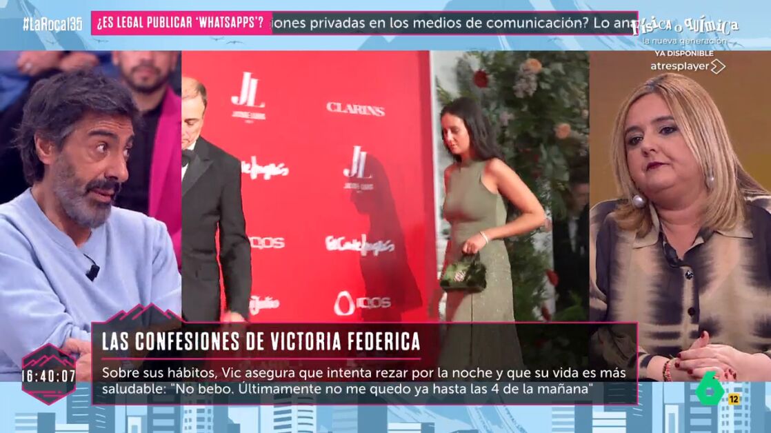 En este vídeo de La Roca, Juan del Val defiende la actitud y la forma en que Victoria Federica se relaciona con los medios de comunicación. "Evidentemente, es una chica muy tímida", comenta el colaborador, y añade que, a pesar de que le "cuesta un montón" hablar en público, "ahora va rompiendo" poco a poco el cascarón.