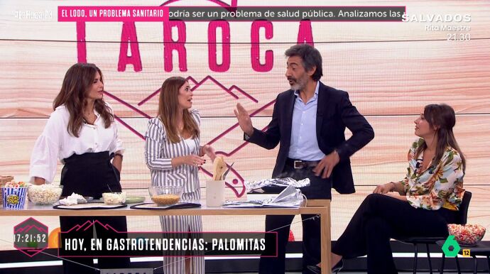"Es como si estuviera friendo chocolate", ha explicado del Val mientas sus compañeras le sacaban a relucir que por el agujero que habían hecho en el papel de aluminio empezaba a salir humo. Al cabo de unos minutos y al ver que las palomitas no se empiezan a hacer, le comienzan a decir al escritor que algo está haciendo mal.