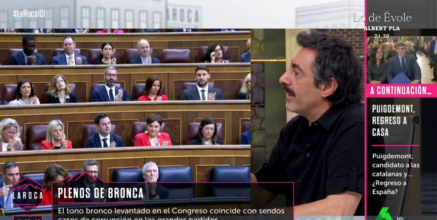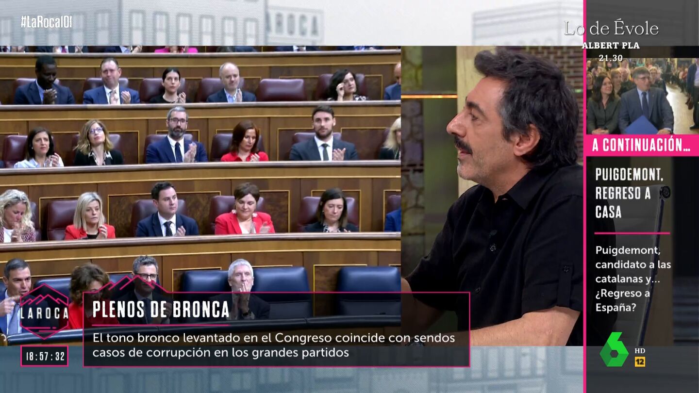 Juan del Val se muestra contundente en La Roca con la forma de hacer política en España al ver el enfrentamiento que tuvieron Feijóo y Pedro Sánchez durante una sesión del Congreso después de que el popular preguntara si era posible gobernar sin presupuestos, a lo que el presidente del Gobierno respondió con que "dimita Ayuso". "Luego Feijóo dio a entender que se anduviera con cuidado y la ministra de Igualdad, gritando, salió con una información que sabía que era falsa", describe la escena.
