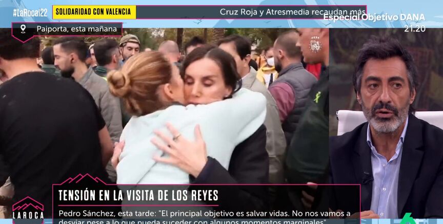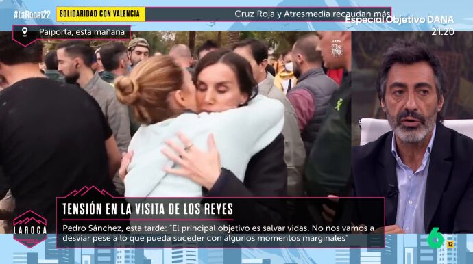 Juan del Val, en La Roca, valoró las declaraciones de Pedro Sánchez tras lo que ha sucedido en su visita a Paiporta. En una visita, realizada junto a los reyes y a Carlos Mazón, presidente de la Generalitat Valenciana, en la que han sido recibidos con insultos y donde les han lanzado diversos objetos. Uno de ellos, un palo, impactó en la espalda del presidente del Gobierno.