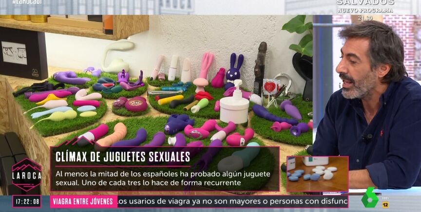 Las balas vibradoras, vibradores anales y los anillos vibradores son los juguetes sexuales más vendidos entre los españoles, según han explicado en el programa La Roca. Juan del Val ha aportado su particular visión sobre este asunto. "Son un complemento", defiende.