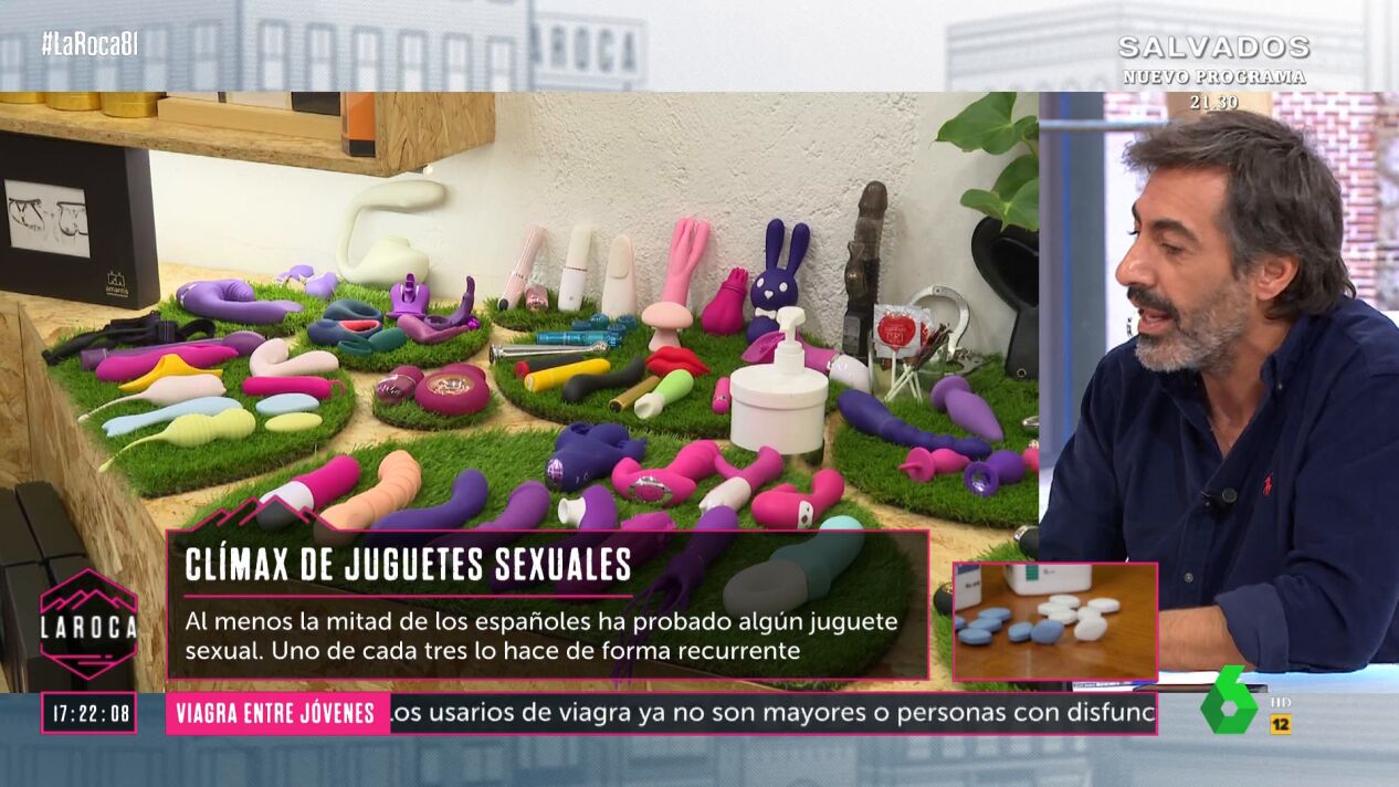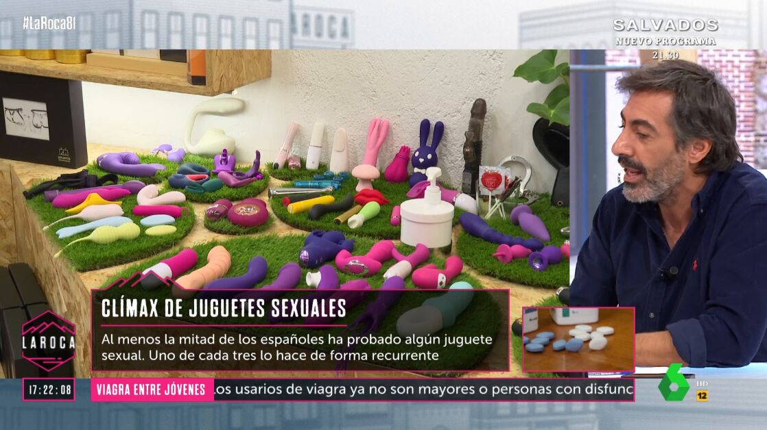 La venta de juguetes sexuales se ha disparado en España. Al menos la mitad de los españoles ha probado algún juguete sexual y uno de cada tres los usa de forma recurrente. Quienes más los utilizan son personas de entre 25 y 50 años. Estos datos han captado la atención de los colaboradores de La Roca, como puede observarse en el vídeo superior.