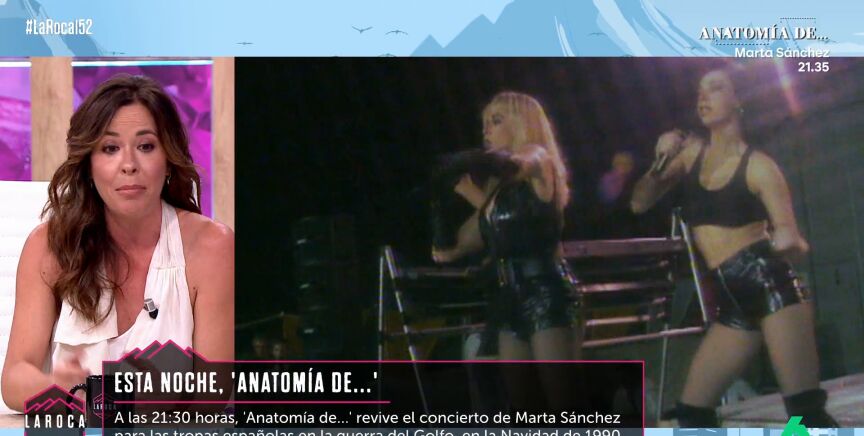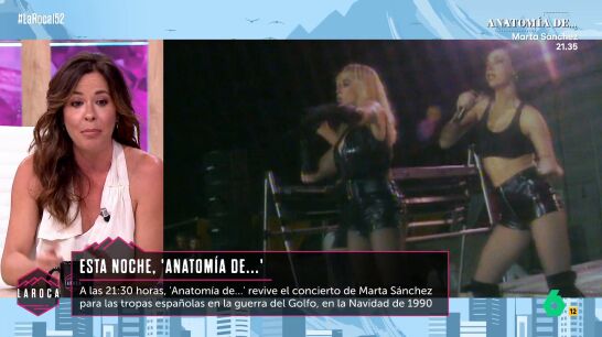 Mamen Mendizábal visita el plató de La Roca para presentar una nueva entrega de 'Anatomía de...'. Esta vez, el programa se adentra en la recordada gala navideña que llevó a Marta Sánchez a actuar ante las tropas españolas en el Golfo en 1990.