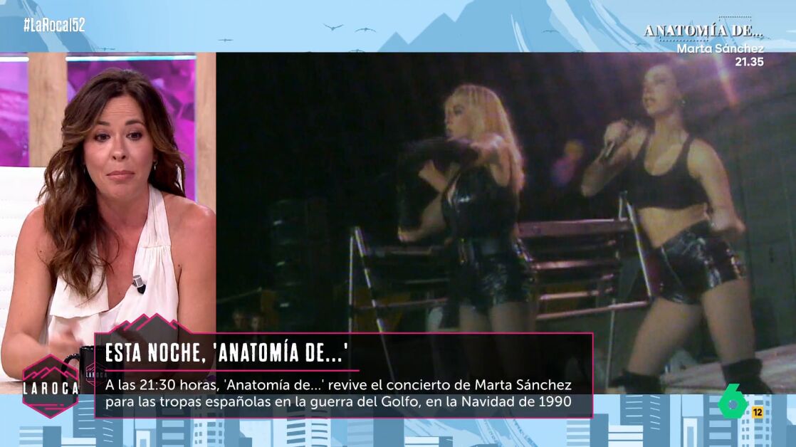 Mamen Mendizábal ha estado en el plató de La Roca para hablar sobre el nuevo episodio de su programa 'Anatomía de...' , que en esta ocasión revive la gala de Navidad organizada en 1990 a petición del entonces presidente Felipe González. Una cita televisiva que quedó grabada en la memoria colectiva por una imagen icónica: Marta Sánchez cantando frente a las tropas españolas desplegadas en la guerra del Golfo.