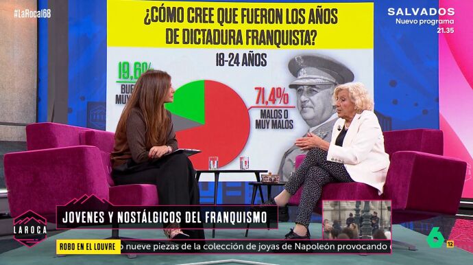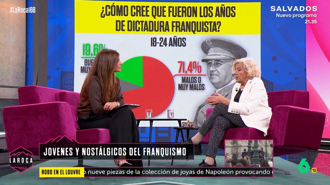 Manuela Carmena analiza en La Roca la preocupante percepción del franquismo entre los jóvenes, el auge de la extrema derecha y la necesidad de repensar el papel del CIS en la sociedad. "Hay que escuchar a los jóvenes", reclama.
