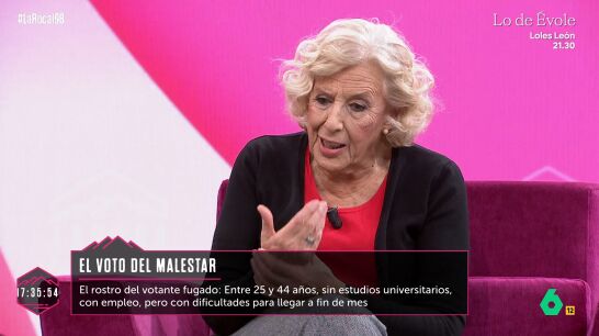 "Si creemos que es importante que haya grupos de políticos de izquierdas para que hagan una política de izquierdas, debemos preguntarnos: ¿y ahora qué es la política de izquierdas?", reflexiona Carmena.