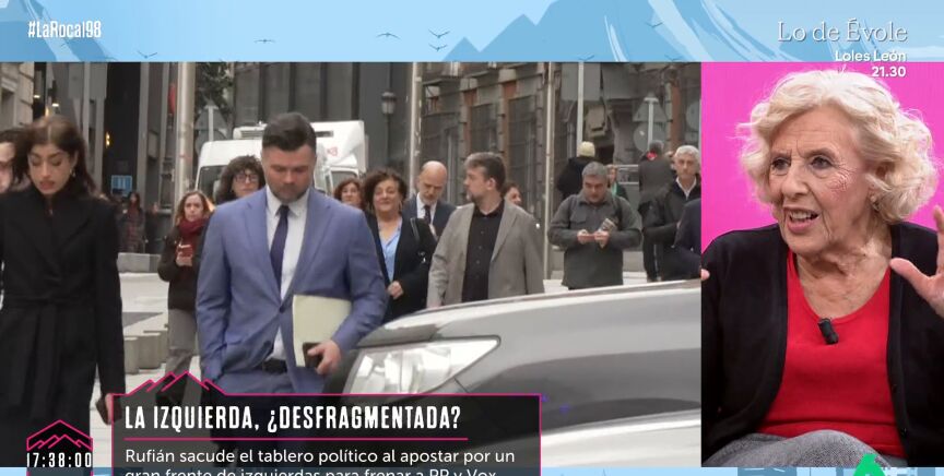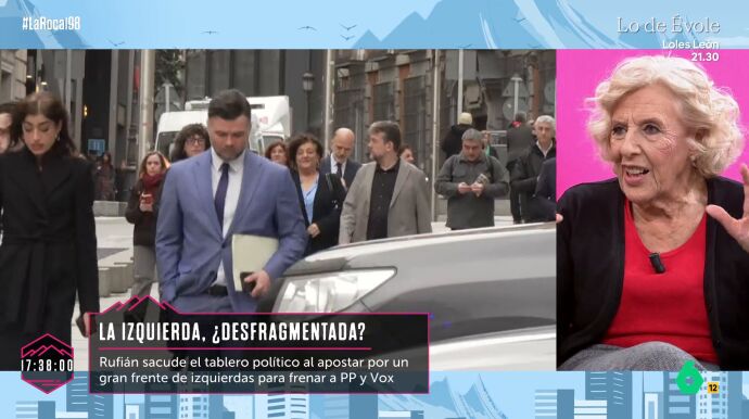 Manuela Carmena visita el plató de La Roca para analizar el proyecto político de Gabriel Rufián. La exalcaldesa habla sobre la importancia de generar ilusión y buscar alternativas para fortalecer a la izquierda.