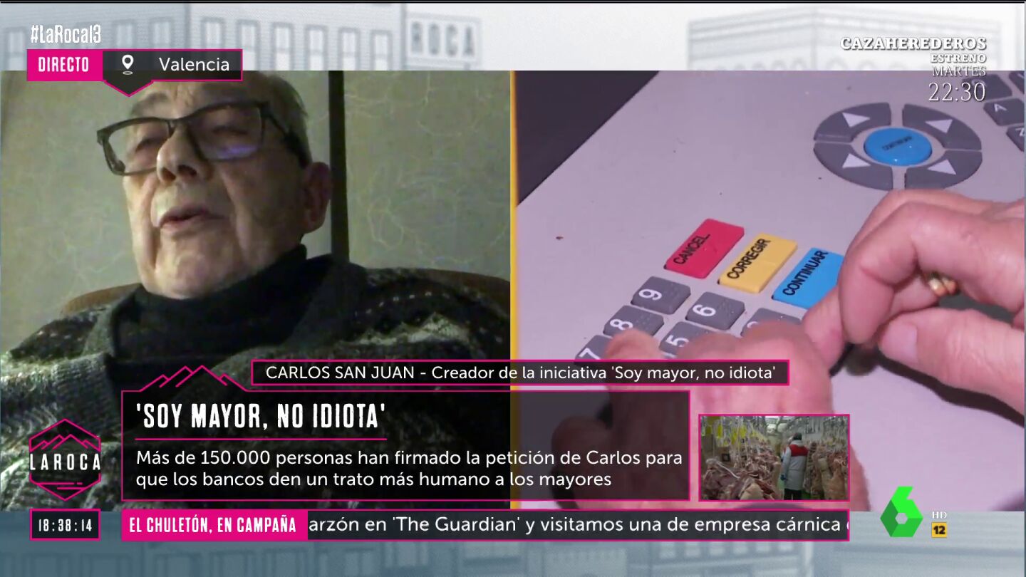 Carlos San Juan ha comenzado una campaña en 'Change.org' llamada 'Soy mayor, no idiota' en la que lamentaba que los bancos "se hayan olvidado de las personas mayores" como él.